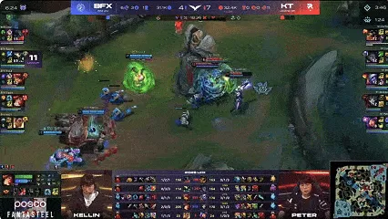 比赛第26分钟,爆发大龙团,KT打出1换5