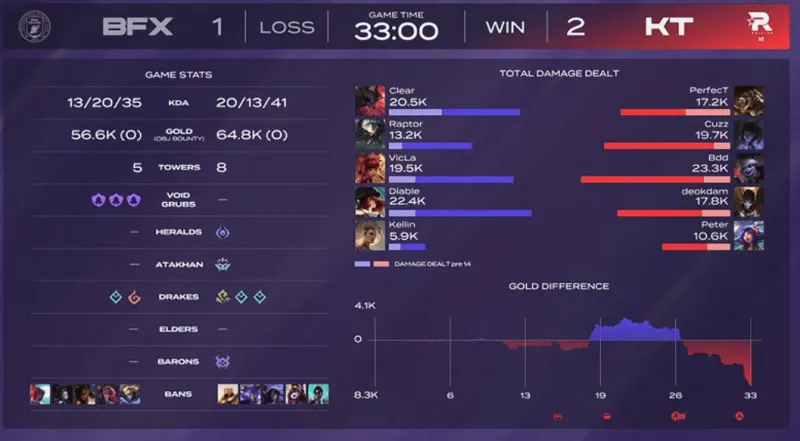 点击为双方选手评分虎扑09月11日讯 【GAME3】BFX蓝色方、KT红色方